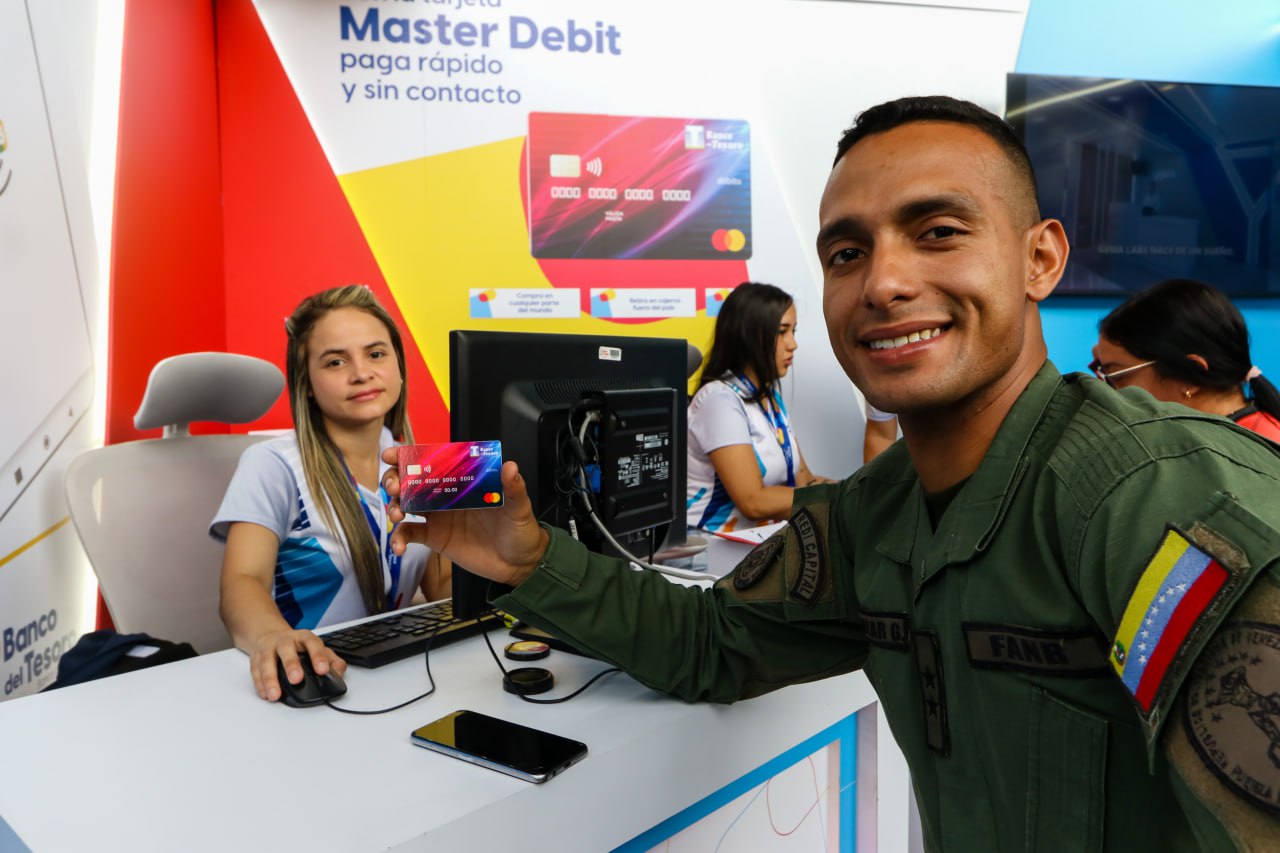 Un oficial de la FANB, Carlos Aular, se acercó al stand de nuestra institución financiera, abrió su cuenta y obtuvo su Master Debit, compartió su emoción de tener este instrumento de pago: “Me siento feliz, fue todo muy rápido y la voy a poder utilizar en estas fechas decembrinas”.