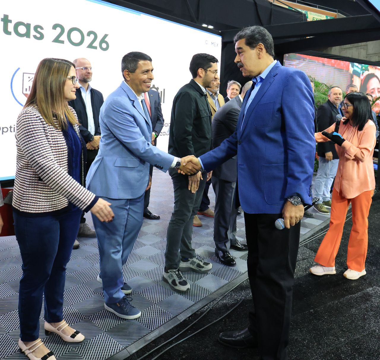 Durante el recorrido por el stand del Motor 10: Banca y  Mercado de Valores, liderado por la ministra de Economía y Finanzas, Anabel Pereira y el secretario de este motor, viceministro de Banca, Seguros y Valores, presidente del Banco del Tesoro, Jimmy Berríos; la vicepresidenta ejecutiva, Delcy Rodríguez, señaló que la banca nacional tuvo un crecimiento de 21% y que sus dividendos superan a los de 2024.