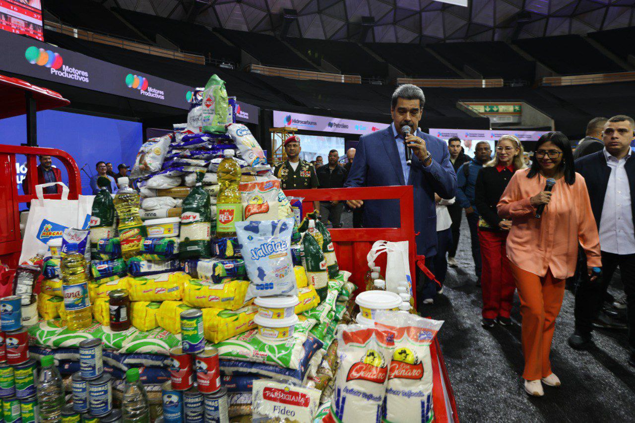 El presidente Maduro recalcó que los alimentos y bienes exhibidos son elaborados en el país: “Acá, vemos la gran capacidad de Venezuela para garantizar su abastecimiento, su riqueza productiva que constituye un pilar para enfrentar desafíos y consolidar la soberanía económica del país”.