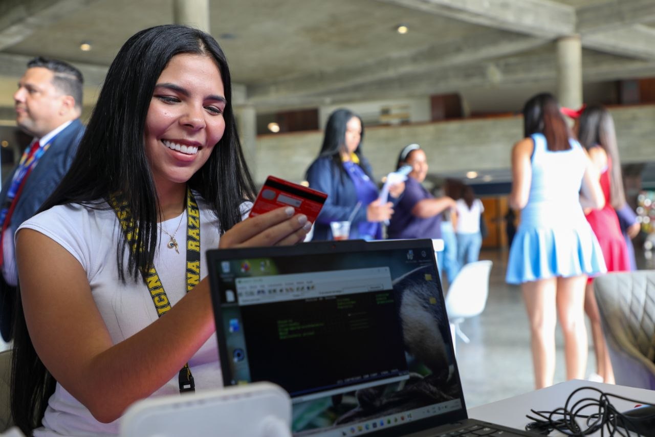 Victoria Rodríguez, estudiante de la Facultad de Humanidades y Educación de la UCV, expresó: «Es genial que el Banco del Tesoro esté aquí. Abrí mi cuenta en minutos y me explicaron cómo usar la tarjeta de uso internacional, Master Debit. ¡Me siento feliz de ser una nueva clienta de la institución financiera!”.