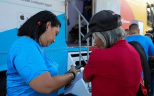 En el punto de encuentro las personas solo con la cédula laminada se acercaron al Banco sobre ruedas, T-mueve, a fin de conocer los beneficios de la tarjeta de uso internacional, Master Debit, con la que se puede retirar efectivo en cualquier cajero fuera del país, adquirir productos en línea y realizar pago móvil, con la tecnología sin contacto. Además, los ejecutivos de negocios promovieron la experiencia digital que ofrecen la App T Móvil y la plataforma www.bt.com.ve; donde se pueden efectuar transferencias, pago móvil y mantener los servicios al día.
