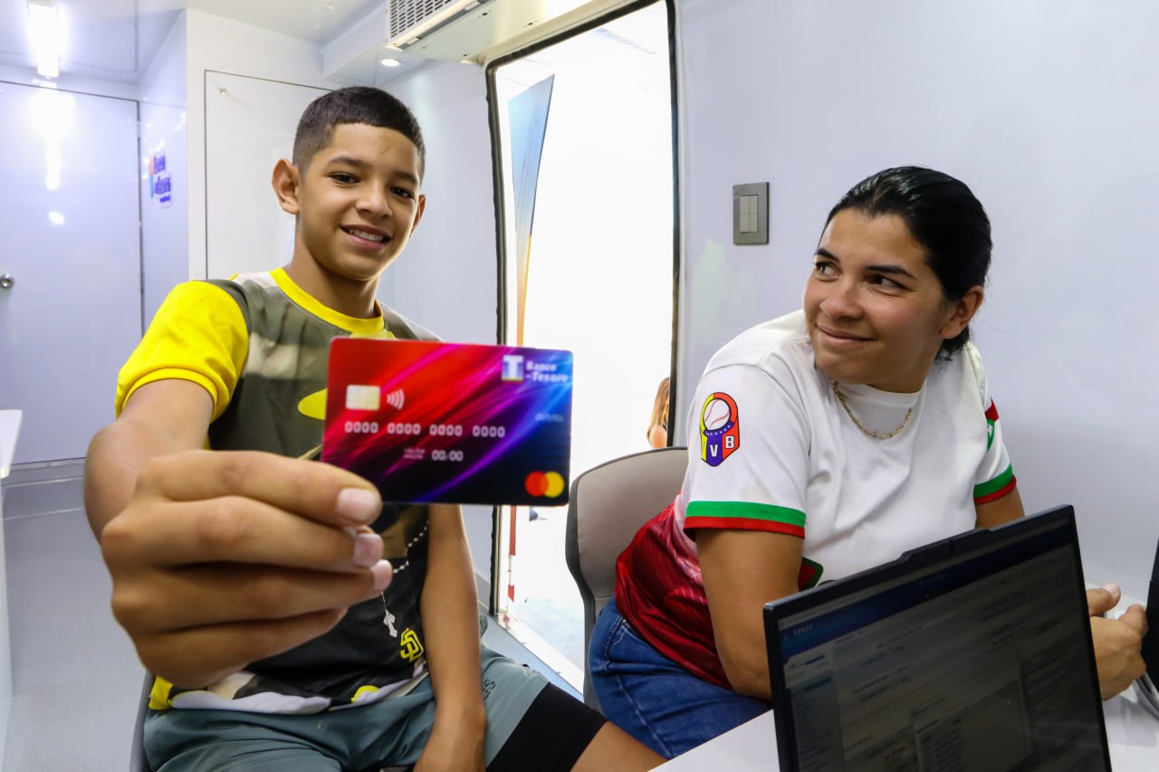 El Banco del Tesoro vivió con venezolanos(as) la pasión deportiva, facilitando el acceso a la banca en espacios de recreación, a fin de fortalecer su presencia en los diferentes rincones del país, brindando soluciones financieras al pueblo, con sus nuevas agencias bancarias itinerantes.